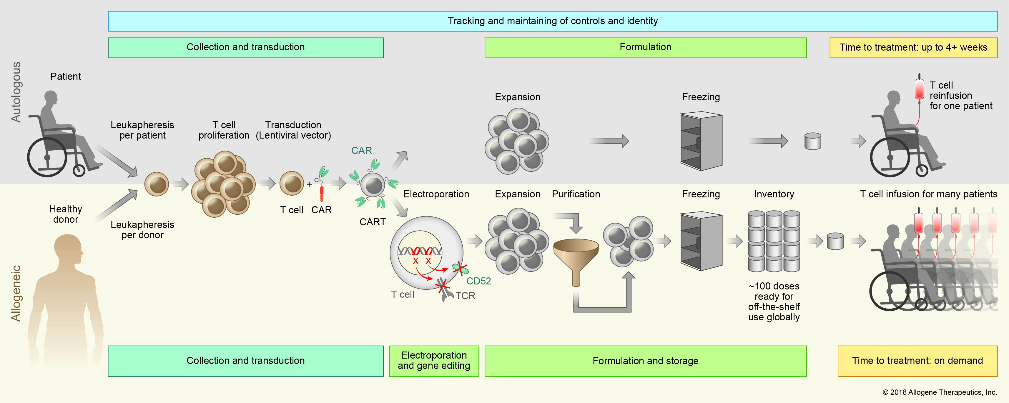 The process for manufacturing our off-the-shelf GMAR TTM therapy first involves harvesting healthy, selected, screened and tested T cells from healthy donors. This means that a larger portion of eligible patients, including those who are critically ill and have T cells that are difficult to harvest or expand, can potentially receive treatment, and no eligible patient will have to undergo leukapheresis (a laboratory procedure in which a patient’s white blood cells are separated and the remaining blood cells and plasma are returned to the patient).